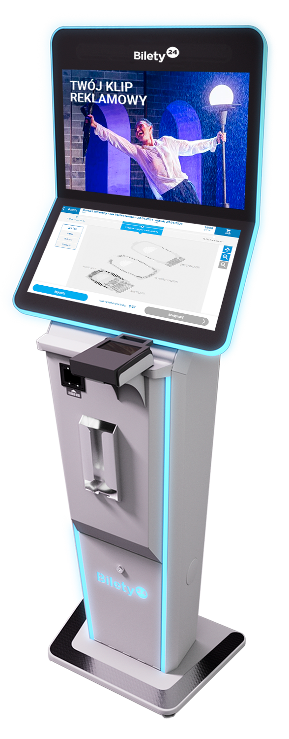 Biletomat B24 to samoobsługowe urządzenie umożliwiające kupno i rezerwację biletów na wydarzenia kulturalne.